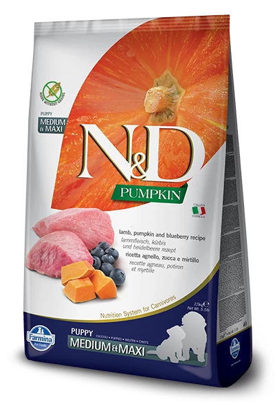 Farmina N&D Pumpkin Grain Free Canine Puppy Medium&Maxi Lamb&Blueberry – Description du produit