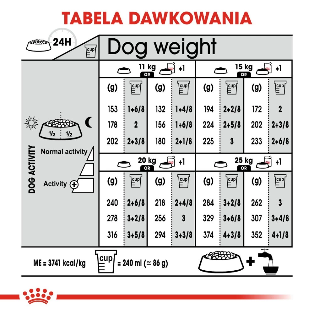 | 15 kg | 194g | 172 + 1 sachet | 224g | 202 + 1 sachet | 255g | 233 + 1 sachet |