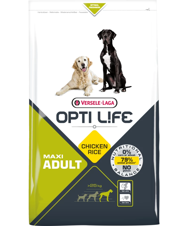 Opti Life Adulte Maxi est une formule parfaitement équilibrée pour les grandes races (> 25kg) à base de poulet et de riz, spécialement développée pour que votre chien acquière et conserve une condition physique optimale.