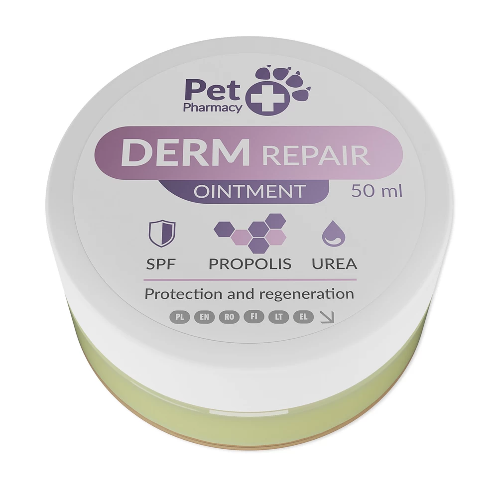 DermRepair est une pommade protectrice et régénératrice avec filtre UV spécialement conçue pour les animaux de compagnie. Elle forme une barrière protectrice sur la peau, qui la protège des influences extérieures négatives.