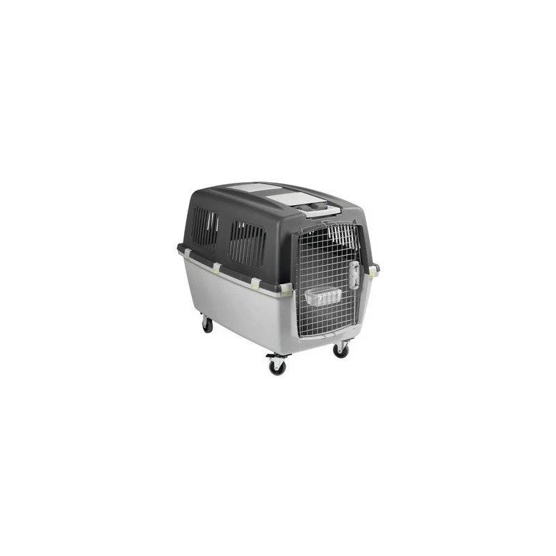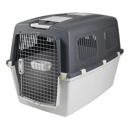 Conforme aux normes IATA (reconnu par presque toutes les compagnies aériennes). Transporteur robuste avec porte métallique. Loquets sécurisés et verrouillables Grande poignée à l’avant, idéale pour tirer (kit de roues non inclus). Équipé d’un bol à nourriture (fixé à la porte) et de 2 compartiments de rangement. Les fentes permettent une circulation d’air adéquate. Fabriqué en plastique et en métal. Couvercle fixé par des boutons-pression.