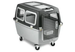 Conforme aux normes IATA (reconnu par presque toutes les compagnies aériennes). Transporteur robuste avec porte métallique. Loquets sécurisés et verrouillables Grande poignée à l’avant, idéale pour tirer (kit de roues non inclus). Équipé d’un bol à nourriture (fixé à la porte) et de 2 compartiments de rangement. Les fentes assurent une circulation d’air adéquate. Porteuse en plastique et métal. Couvercle verrouillable par boutons-pression.